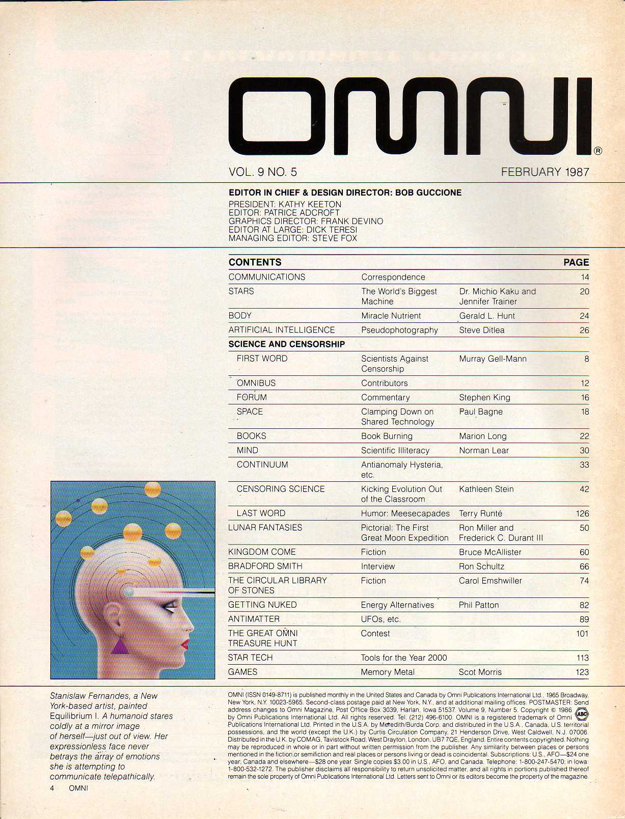 Bruce McAllister Kingdom Come. Carol Emshwiller The Circular Library of Stones. Index by Author Index by Topics Omni Cartoons Memorable Omni Ads Main Index
