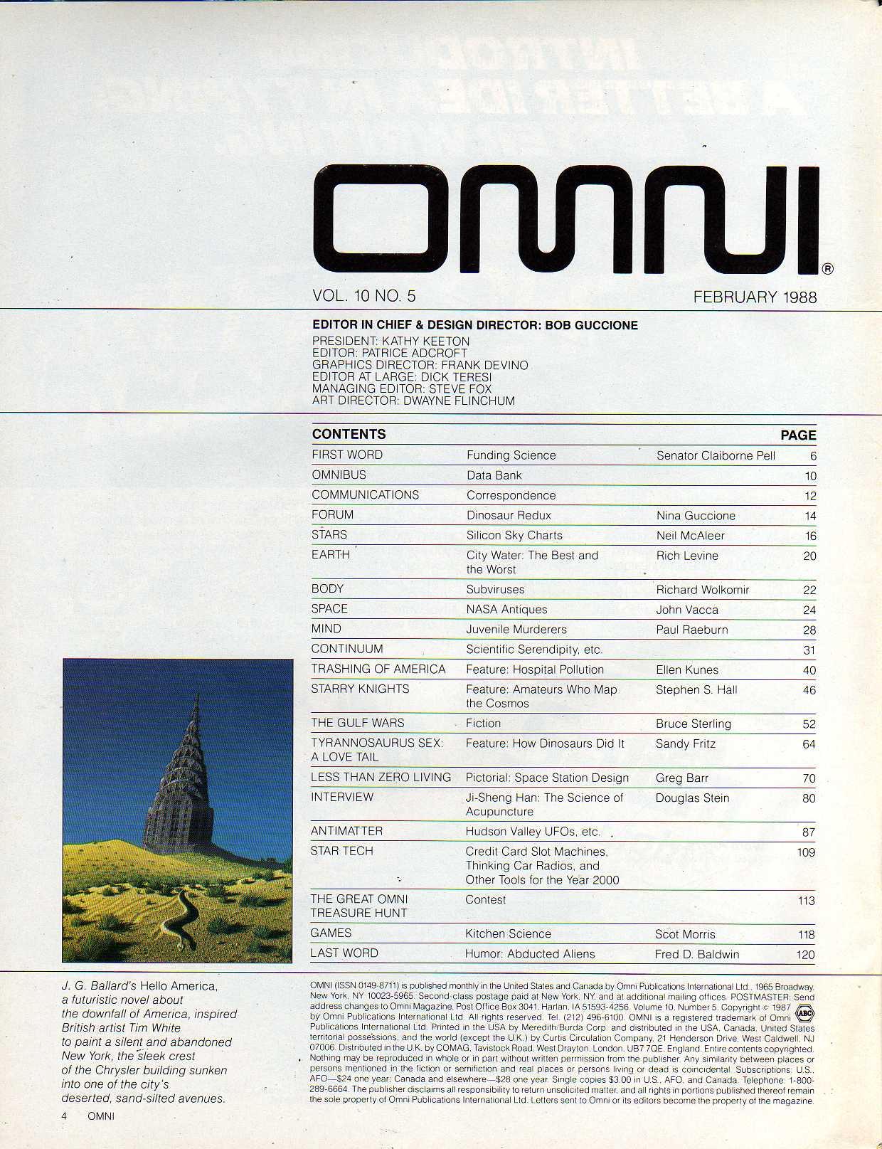 Bruce Sterling The Gulf Wars. Index by Author Index by Topics Omni Cartoons Memorable Omni Ads Main Index