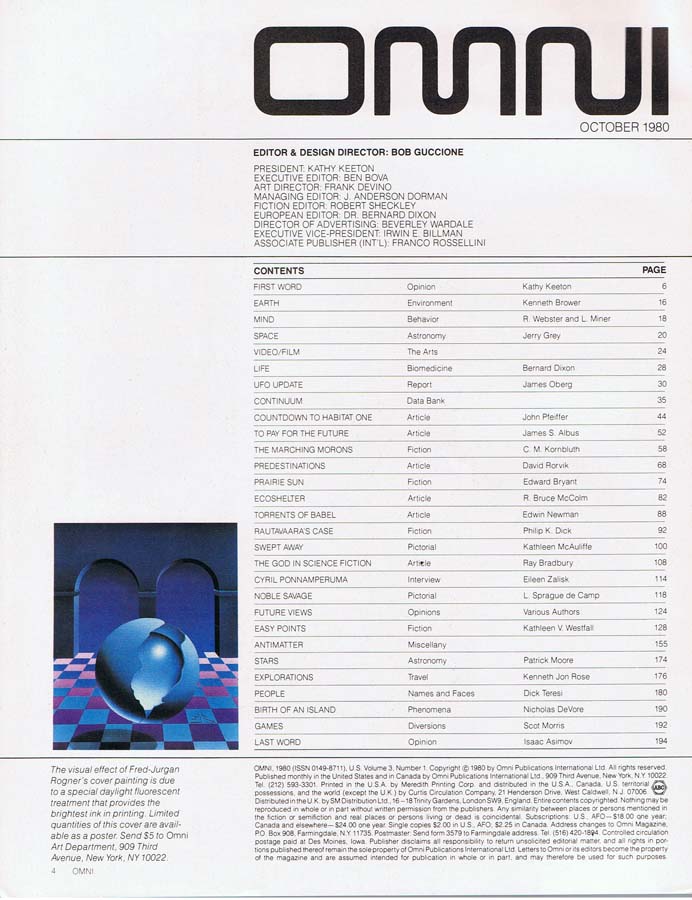 Oct 1980 Cyril Kornbluth . Oct 1980 Edward Bryant . Oct 1980 Kathleen Westfall . Oct 1980 Philip Dick . Oct 1980 Ray Bradbury . Index by Author Index by Topics Main Index