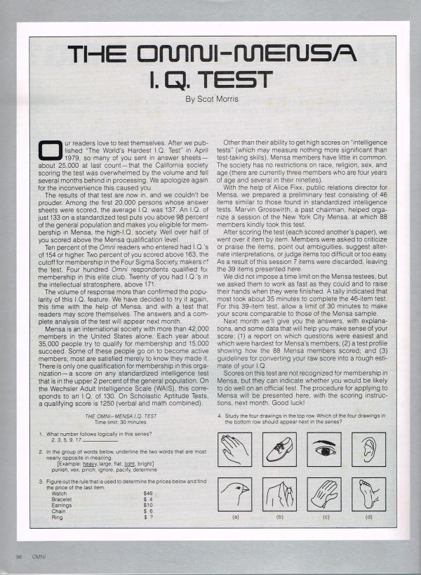 Omni Mensa IQ Test