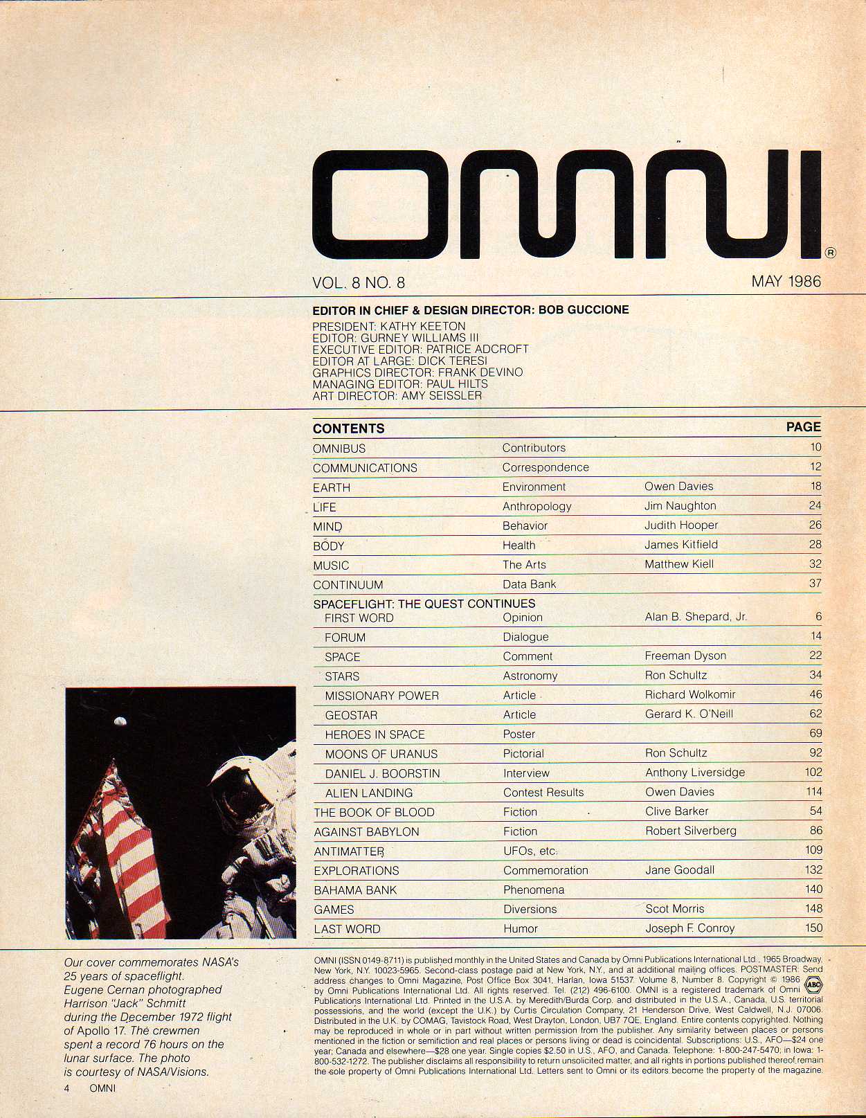 Clive Barker The Book of Blood. Robert Silverberg Against Babylon. Index by Author Index by Topics Omni Cartoons Memorable Omni Ads Main Index