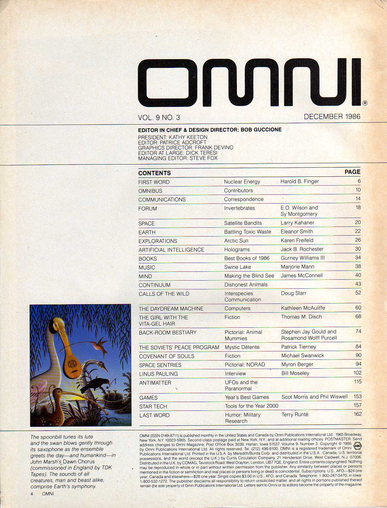 Thomas Disch The Girl With The Vita-Gel Hair. Michael Swanwick Covenant of Souls. Index by Author Index by Topics Omni Cartoons Memorable Omni Ads Main Index
